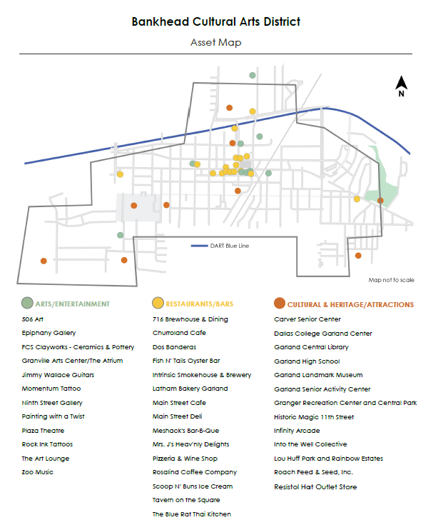 These development and district maps help developers and investors quickly understand where reinvestment is happening across Garland and how different areas of the city are evolving. The maps highlight catalyst sites, Downtown districts, historic areas, cultural corridors and historic neighborhoods – along with Tax Increment Financing (TIF) boundaries that support redevelopment, infrastructure investment and project feasibility.